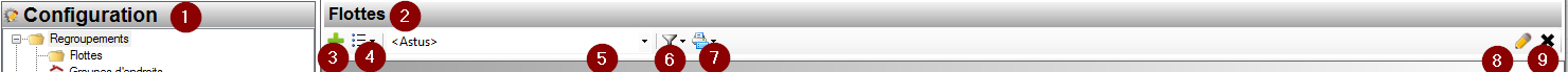 Cet entête se trouve sur la première ligne de toutes les sections du logiciel Astus soit pour Temps Réel, Historique, Configuration, Rapport et Entretien.