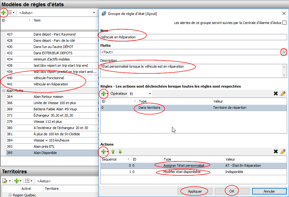 Prendre note que toutes ces étapes sont nécessaires et elles sont les mêmes si vous basez vos règles d'états sur des endroits, des accessoires ou autres conditions que des territoires. Si vous éprouvez des difficultés techniques, contactez votre gestionnaire ou votre administrateur. Si le problème persiste, communiquez avec le service à la clientèle au 450-442-7887 ou au 866-702-7887 X229.