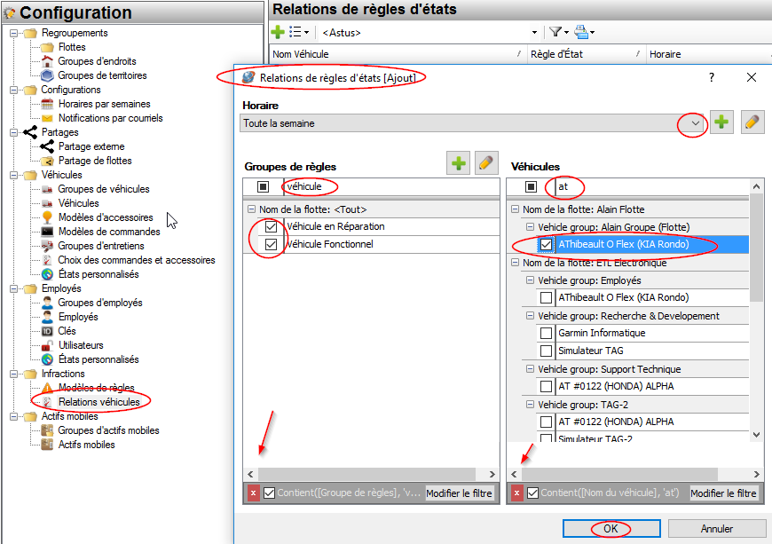 • Dans la section Groupes de règles choisir la règle d'état que vous avez créée pour le véhicule.