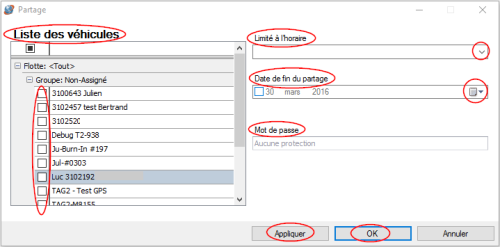 - Complétez le champ Liste des véhicules en choisissant un véhicule dans la liste à l'aide du menu déroulant.