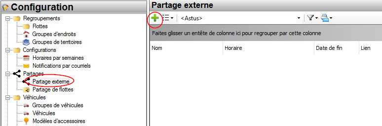 - Dans la section Configuration, choisir l'option Partage Externe.