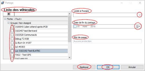 - Compléter le champ Liste des véhicules en choisissant un véhicule dans la liste à l'aide du menu déroulant.