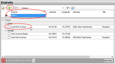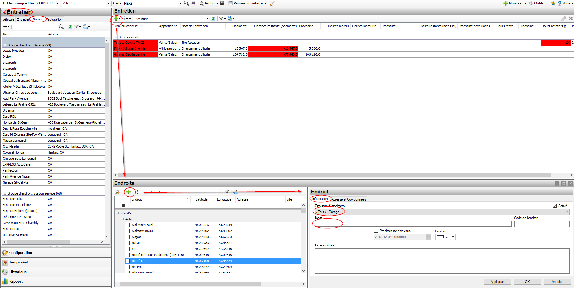 Prendre note que l'endroit ou les coordonnées du garage doivent être créés préalablement. Pour créer un endroit, c'est le même processus que vous trouverez à la section Temps Réel. Nous vous prions de vous y référer.