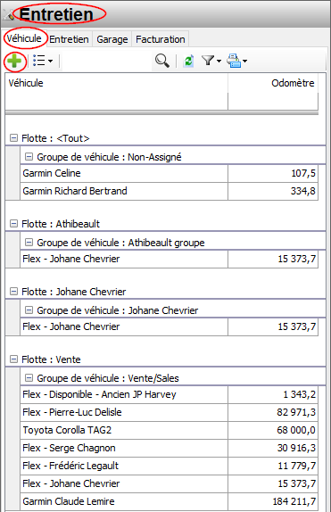 - Dans la section Entretien, choisir l'onglet Véhicule.
