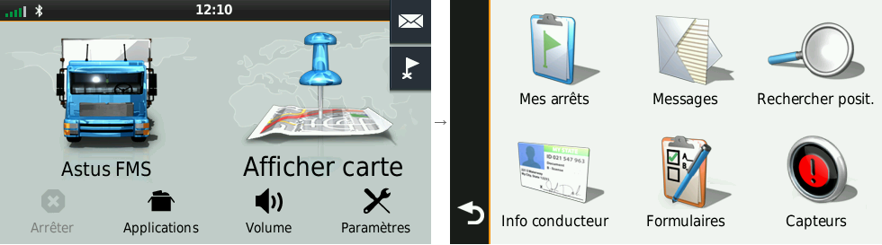Pour accéder au guide du chauffeur et ses fonctionnalités, cliquez sur le lien: http://astus.com/doc/?f=AstusGarmin_GuideChauffeurs.pdf