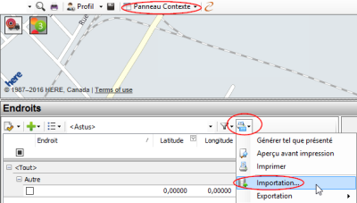 • Allez dans le Panneau Contexte et choisir l'option Endroits.