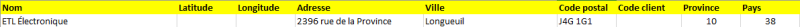 • Colonne 7: OPTIONNEL: Code client. Si vous n'avez pas les coordonnées de vos codes clients, la colonne doit demeurer vide.