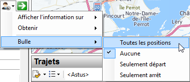 Vous pouvez afficher temporairement une bulle en plaçant votre souris au dessus d'un icône sur la carte. (voir l'exemple, illustration en bas de droite)