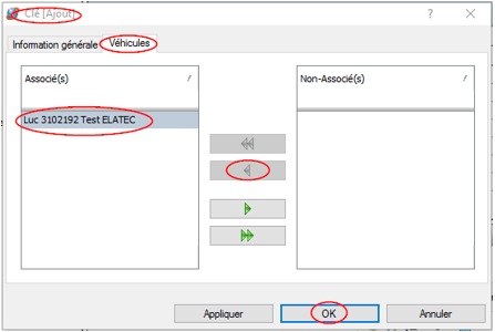 Complétez ensuite les champs de l'onglet Véhicule en associant un véhicule à la clé et cliquez sur OK.