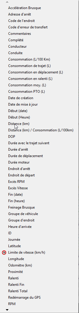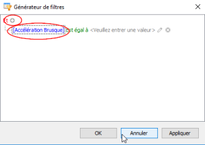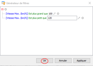 Faites un choix de filtres (Tout comme dans l'exemple précédent, vous désirez avoir les vitesses > 100Km/h et < 120Km/h)