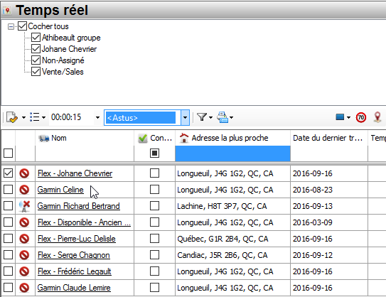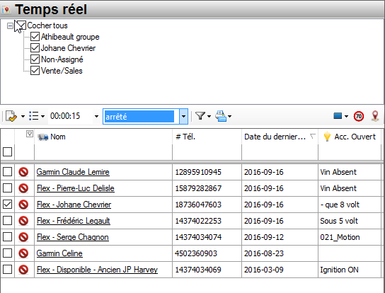 • Vous voyez uniquement les véhicules filtrés sous la condition Arrêté.