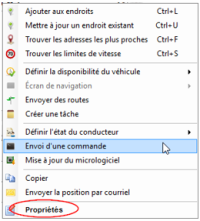 - Cliquez sur le véhicule CM-1, celui pour lequel vous avez activé ou désactivé l'anti-démarreur, une fenetre s'ouvre. Choisir Propriétés, vous obtiendrez le tableau de l'état du véhicule.