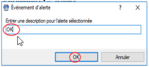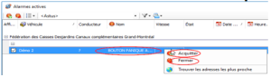 • Avec le coté droit de la souris, Acquitter et Fermer les alarmes. Écrire OK pour confirmer la résolution de l'alarme.